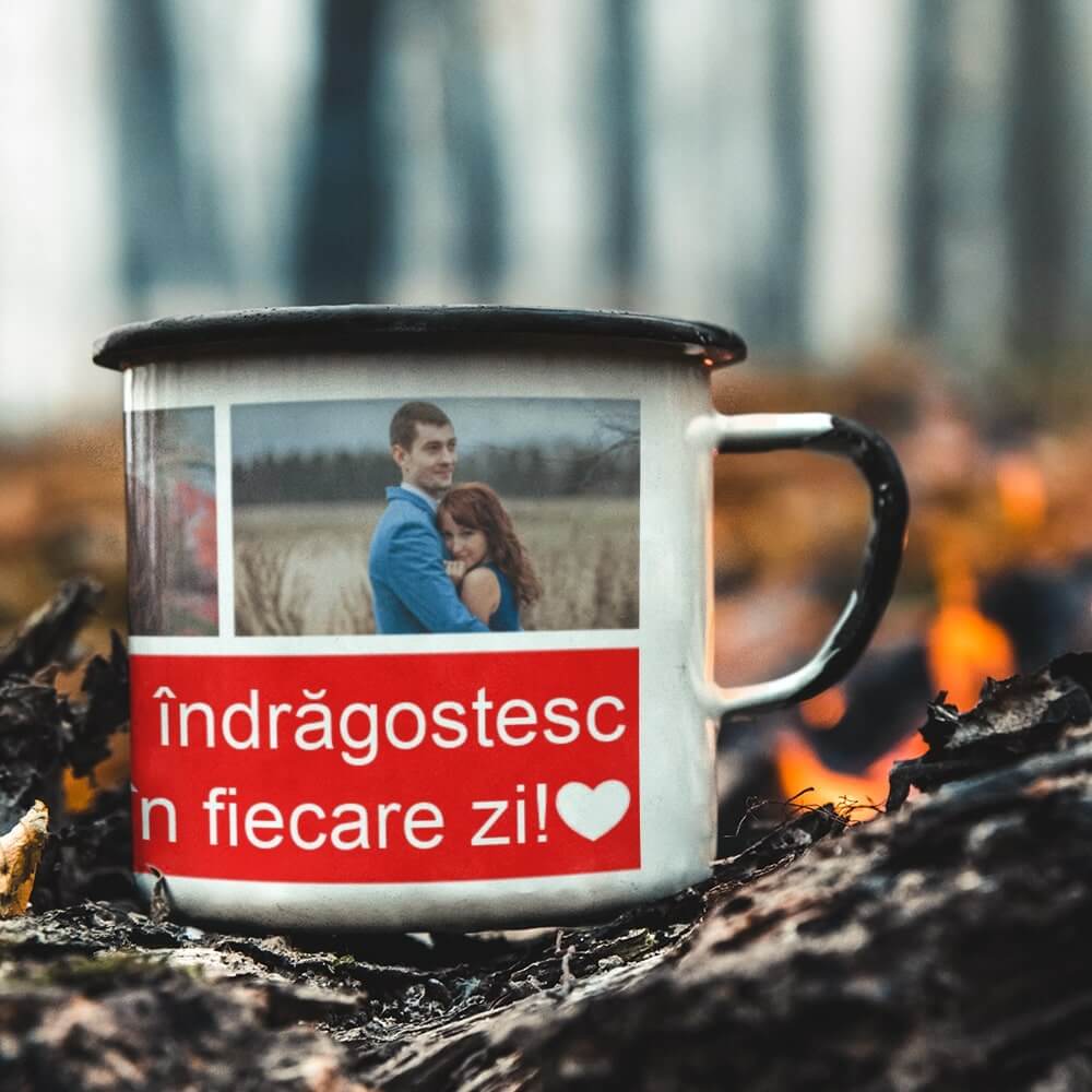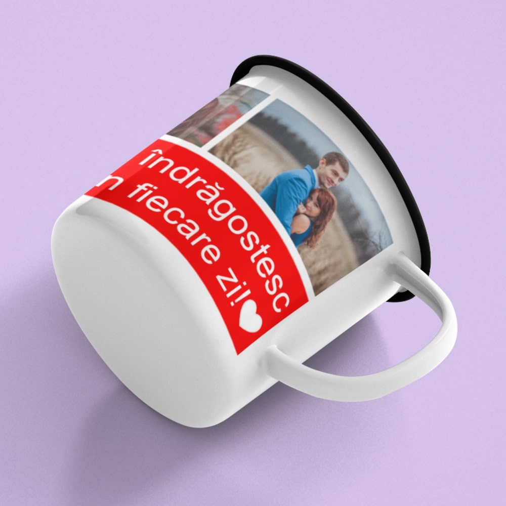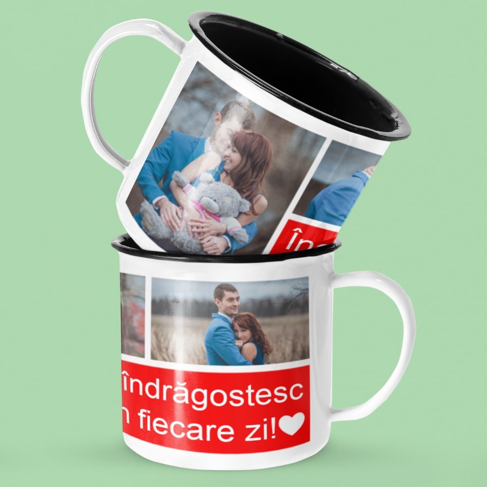 Cana metalica emailata personalizata cu 3 poze si mesaj