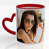 Cana personalizata rosie cu toarta in forma de inima cu poze si mesaj