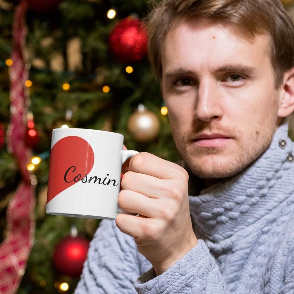 Set 2 Cani personalizate de cuplu cu text - Model inima